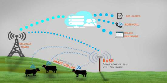 在全球,已經有不少的農場開始使用動物可穿戴智能設備,用這些設備實時采集動物的各類數據并發(fā)送到遠端服務器進行智能分析,從而預測疾病、發(fā)情期,以及智能放牧等。
