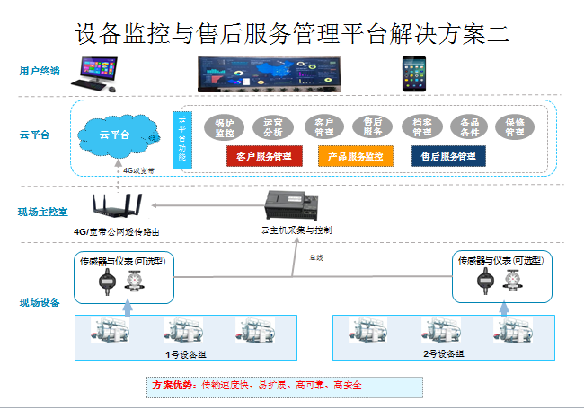 1.2.1 企業(yè)設(shè)備可以在全世界能聯(lián)網(wǎng)的地方進(jìn)行遠(yuǎn)程監(jiān)控到設(shè)備的運(yùn)行狀態(tài)、故障狀態(tài)、運(yùn)行時(shí)間、可以遠(yuǎn)程開關(guān)機(jī)操作、能改按照原有工藝自動(dòng)運(yùn)行。